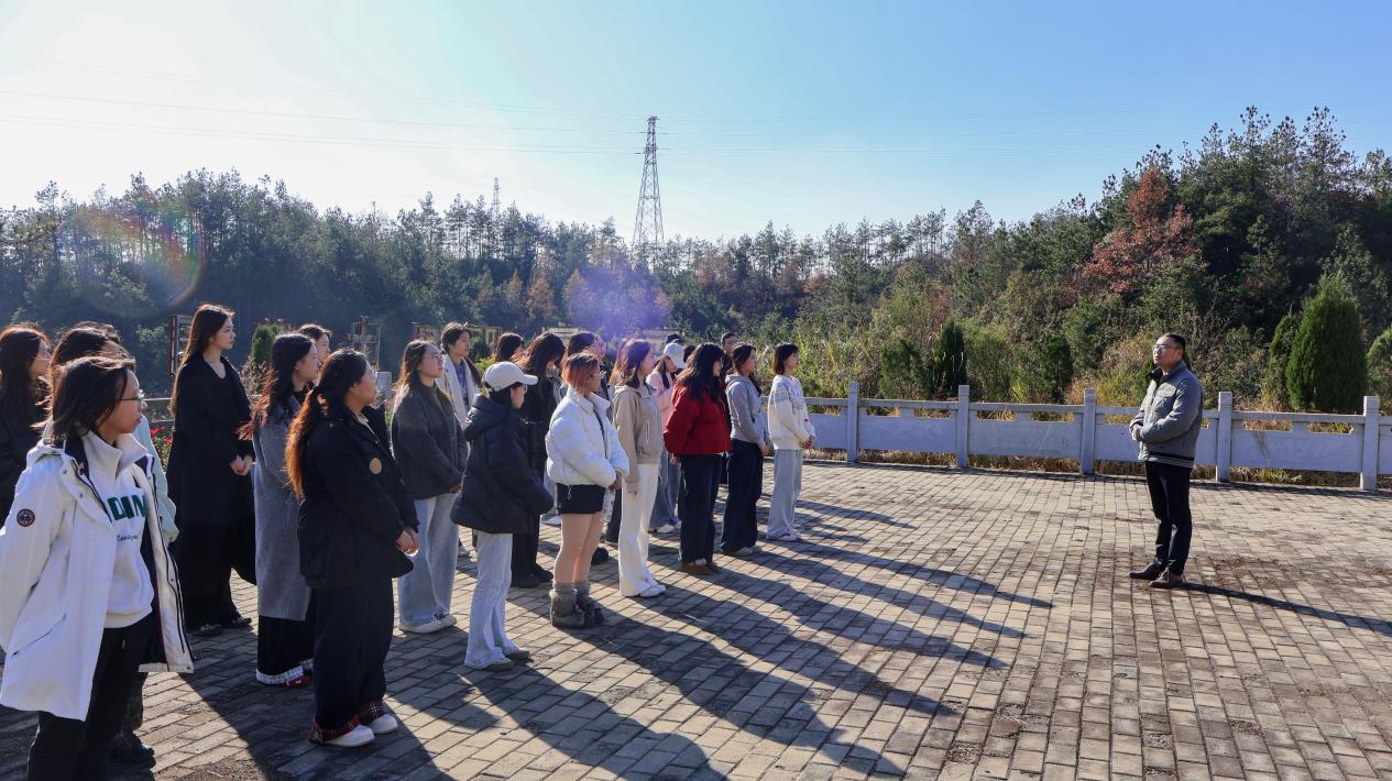 “瞻仰·励志致远”阶段,师生前往蔡家畈村烈士陵园、萧伯唐烈士纪念馆。williamhill官网驻英山县石头咀镇冯家畈村工作队队长袁勋结合“大别山精神”的系统化研究、学理化阐释、学术化表达从历史、理论、实践等多个维度介绍大别山精神的由来源起与时代脉动,号召同学们利用专业所学做好“大别山精神”的当代诠释与形象运用。